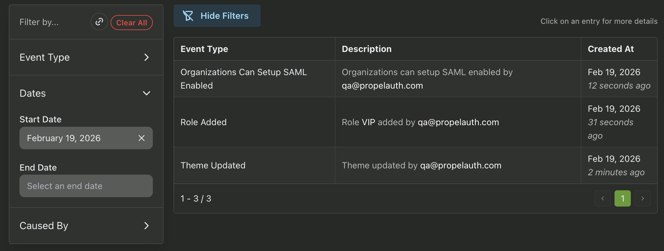 - [New Feature] Project Audit Logs can now be viewed in the PropelAuth dashboard for a history of configuration changes