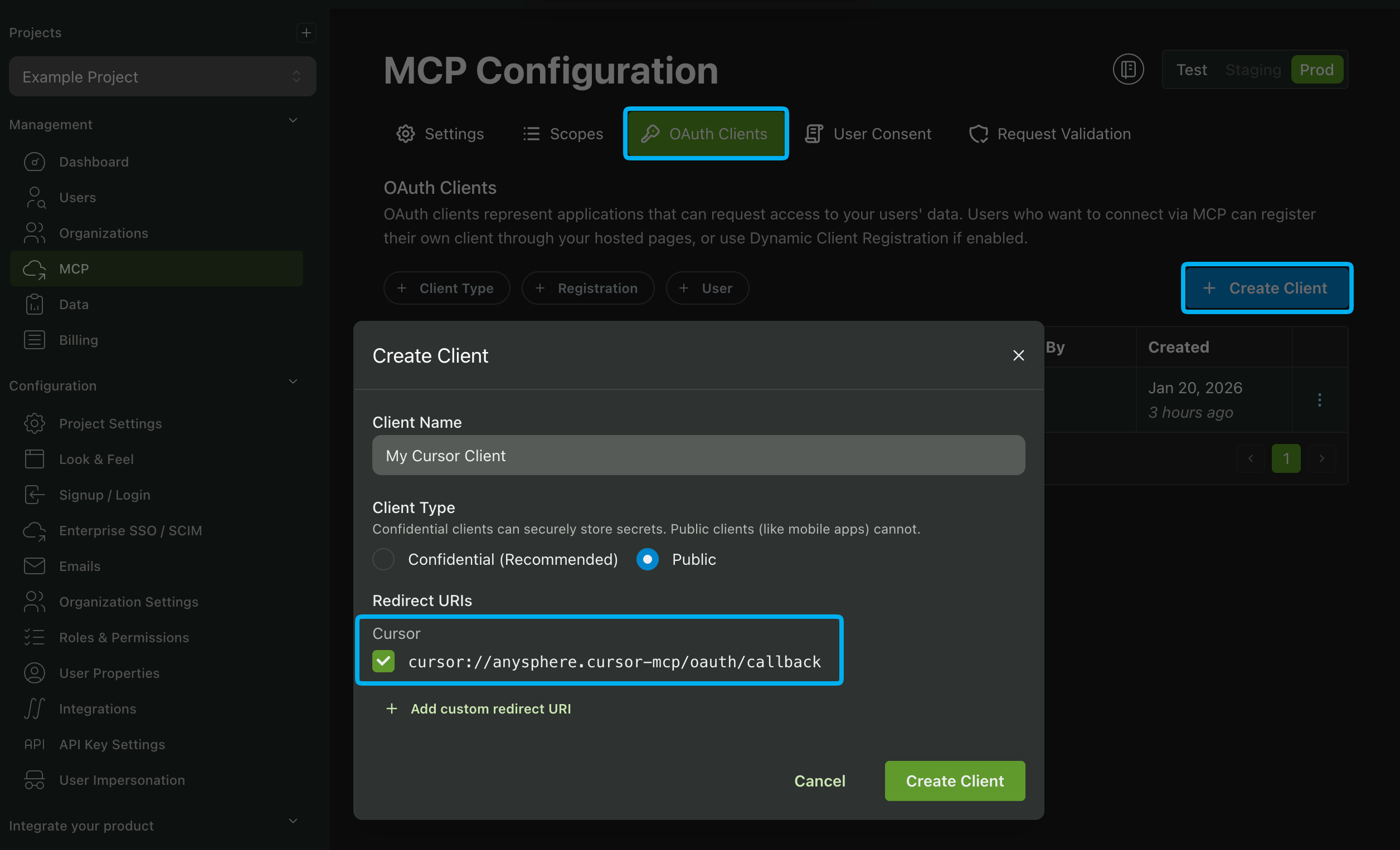 Creating an MCP OAuth Client